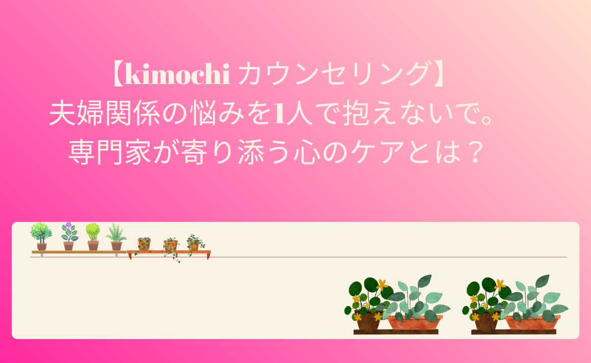 kimochiは、そんなあなたの心に寄り添い、穏やかな夫婦関係を取り戻すサポートをしてくれるサービスです。