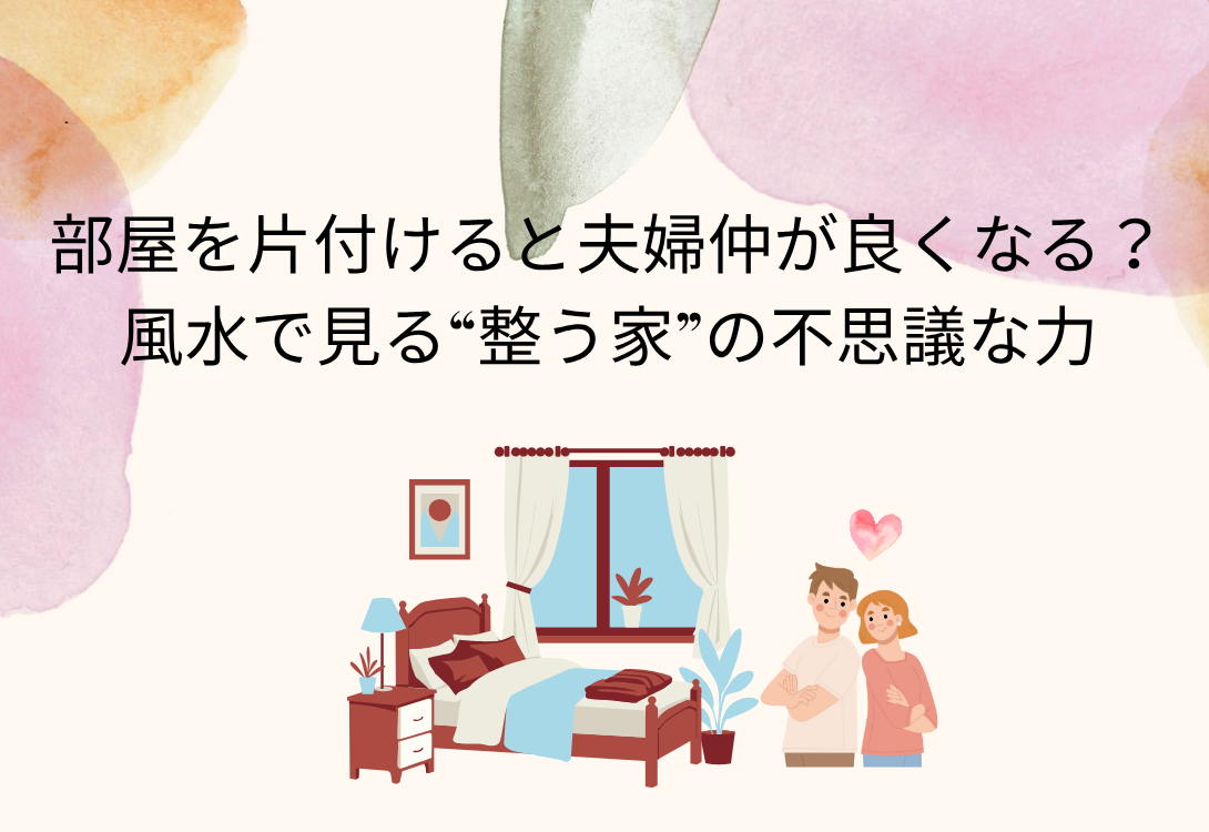 今回は、「部屋を片付けること」が夫婦円満につながる理由と、風水的に見た“片付けのメリット”を詳しくご紹介します。